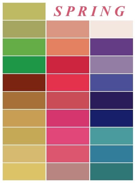 Happy Monday dolls! Let’s kick this week off by talking about the perfect colors for your skin tone. Have you ever borrowed a top from one of your friends? You put it on and what appears to make them glow like a frickin angel makes you look like you took a bath in some dish water. The probable reason is that it’s the right shade for them and not for you. If you stand under natural light and look at your veins you can get a head start on what will look good on you. If your veins appear more of a greenish tint, then you have warm coloring. If they appear blue, then you’re a cool. That is half the battle. I’m going to break down the seasonal colors for you and you can decide what season you are.