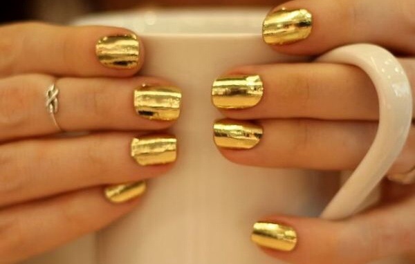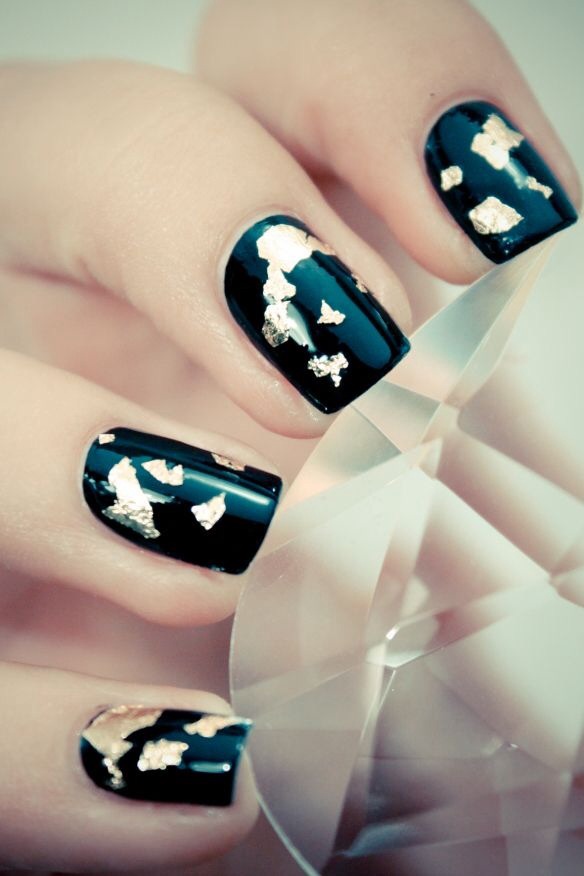 If gold leaf isn’t your thing, then you have tons of other golden options. You can pick up The Man With The Golden Gun polish by OPI. Basically it’s gold flecks in a clear top coat that add a simple but elegant touch to your nails. You can try straight gold glitter by buying a glitter polish and doing at least two coats, or you can make your own. Just paint your nail, cover in loose gold glitter, and finish with a top coat. You can also try a gold caviar nail by Ciate, it’s beautiful but won’t last as long as your other options.image