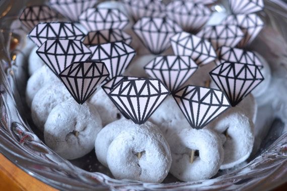 You know the phrase “It takes a village to raise a child”? Well, no. It takes a village to throw a shower. No joke. Thanks to Margo Henuset and Sean and Barb Murphy, the location, food and drinks were pretty much planned. We chose spinach dip, veggie trays, vegetable pizza and punch to serve. Having it in a pub styled restaurant we figured if you wanted alcohol of your choice, you could order it…..and ooooh we did. Plus I figured if anyone was still hungry I could order a platter off the menu and be safe. They did an amazing job on the food and everyone enjoyed it. Plus, I didn’t have to make it. Winning. Also, we had our amazing Kate Spade striped cake courtesy of Ashley. To add a little more sweet to the party, we also had mini cake doughnuts with paper diamonds on top so they looked like little, delicious diamond rings. Soooo cute.