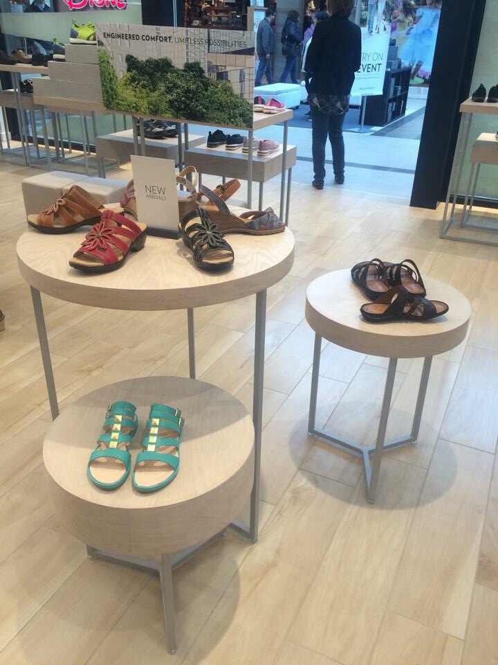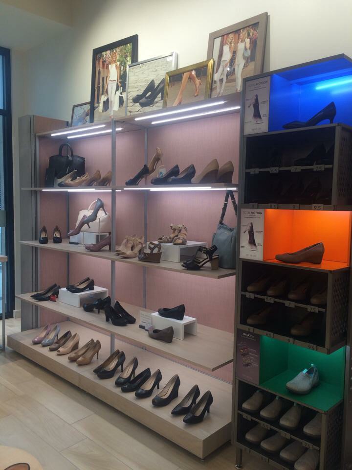 Rockport has recently undergone a rebranding, which focuses on their three core values: style, comfort and technology. Their products and their stores reflect this by incorporating running shoe technology into all of their fashionable pieces. The store itself , which is a very bright and light urban loft style, has great features such as a “runway light” set up and video walls. Very, very, cool.