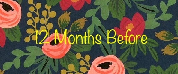 At twelve months before, you have to start doing stuff. Sorry to be the bearer of bad news. You should book your venue, make your guest list and start getting addresses, plan your engagement party and register somewhere or make a wedding site registry.